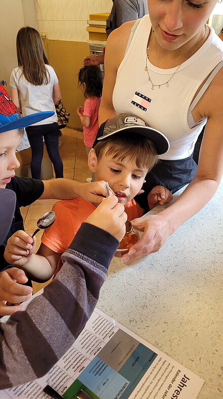 Seien Sie dabei, wenn wir die mit Honig gefüllten Honigwaben aus den Stöcken nehmen und bei uns im Haupthaus schleudern. Erfahren Sie bei dieser Gelegenheit auch einige interessante Fakten über die Bienen und das Imkern.