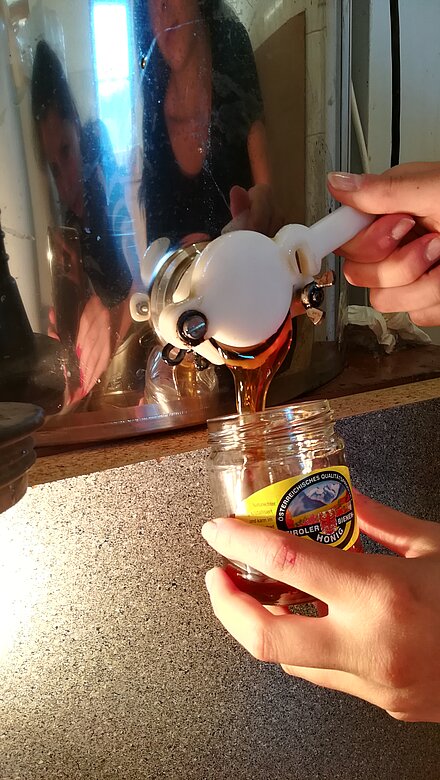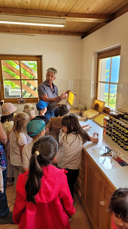Neben der kleinen Berglandwirtschaft und der Vermietung betreuen wir noch eine Imkerei mit eigener Königinnenzucht. Mit den beiden Töchtern, Manuela und Theresa bewirtschaften wir ca. 150 Bienenvölker. Diese produzieren einen überaus leckeren und hochwertigen Honig aus dem Nektar von hauptsächlich Löwenzahn, Heidelbeere, Wald, Himbeere, Alpenrose und den vielfältig blühenden Bergwiesen. Somit ist unser Honig eine Mischung aus verschiedenen Blüten und Kräutern.